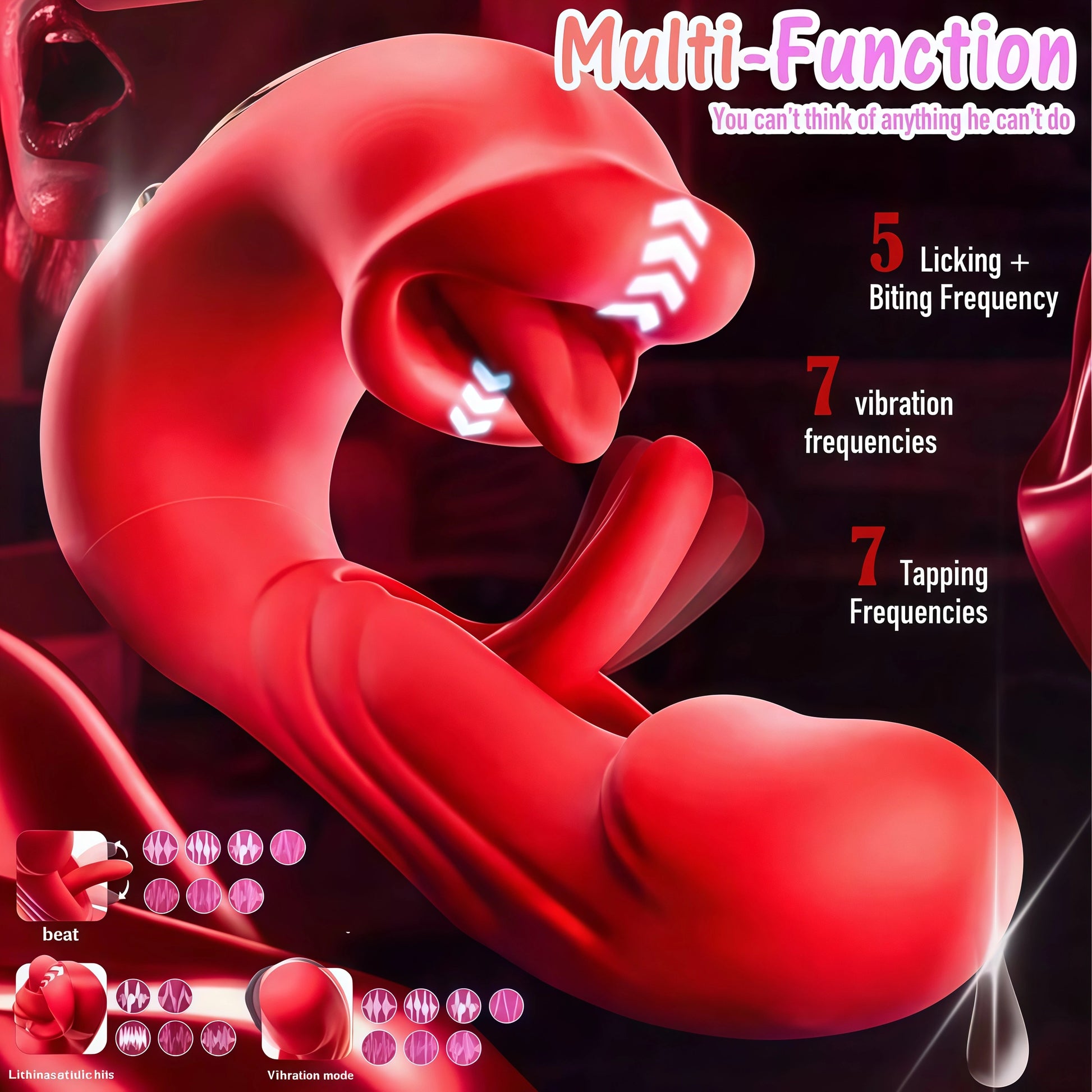 7 Vibrationsmodi • 5 Licking-Rhythmen • 7 Klopf-Impulse – frei kombinierbar für genau die Intensität, die du willst.